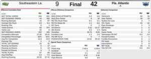 Football FAU Football vs Southeastern Louisiana Team Box Score 9-3-22 Team Box score from the Owls’ contest against the Lions on September 10, 2022. OPEN IMAGE IN NEW TAB FROM MOBILE TO VIEW FULL SIZE OR PINCH TO ZOOM HERE Read More » Rick Henderson September 10, 2022