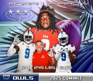 The Florida Atlantic University football team bolstered their defense today with a significant addition to the 2025 recruiting class, acquiring a talented prospect in Adrian Farrow. Adrian Farrow EDGE 6-4, 245 lbs Miami, FL Miami