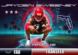 Football Florida Atlantic Football lands former Liberty DB Jayden Sweeney via transfer portal Florida Atlantic Football landed a defensive back through the portal on Tuesday afternoon. Former Liberty DB and 3-star recruit Jayden Sweeney announced he would be transferring to FAU for his 4th season of college football. Read More » Robbie Lastella May 1, 2025
