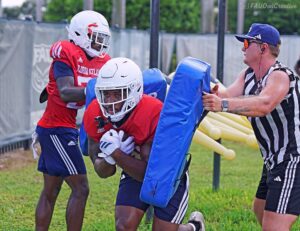 After taking the day off Saturday, FAU Fall Camp continued on Sunday without skipping a beat. With music blaring and a not-so-intense wave of heat, the day’s highlighted player group was the running back corp.