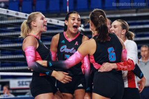 FAU volleyball went 1-1 on Friday in Day One of the Red Raider Classic with a come from behind victory over Green Bay and a hard fought loss against host team Texas Tech. The day