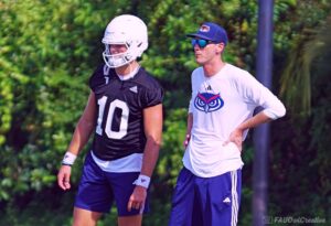 It’s been just over four months since FAU Football touched the grass as a team. This morning the Schmidt Center practice fields were buzzing, with whistles firing and music blaring as players donned their helmets