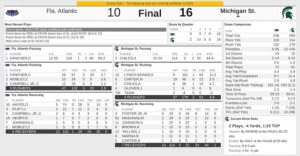 Team Box score from the Owls’ contest against Michigan State on August 30, 2024. OPEN IMAGE IN NEW TAB FROM MOBILE TO VIEW FULL SIZE OR PINCH TO ZOOM HERE