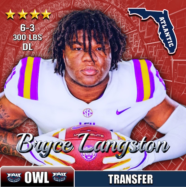 On Friday evening, Former Louisiana State defensive lineman Bryce Langston formally announced his decision to transfer to Florida Atlantic University and suit up along Coach Roc Bellantoni’s front.