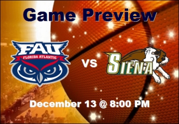 What : Florida Atlantic (6-4, 0-0) vs Siena (2-6, 1-1) When : Monday, Dec. 13th @ 8:00 PM EST Where : Times Union Center TV : Time Warner Cable Sports (New York) Live Video : Siena Pay Per View Internet Broadcast : Here Live Stats : Here Siena Team Site : Here Probable Starters : FAU G Alex Tucker 10.3 ppg G Dennis Mavin 8.3 ppg G Greg Gantt 14.8 ppg F Kore White 10.3 ppg F Brett Royster 7.3 ppg Siena G Rakeem Brookins 8.0 ppg G Clarence Jackson 16.5 ppg F Trenity Burdine 2.9 ppg F O.D. Anosike 6.8 ppg C Ryan Rossiter 19.5 ppg The series Monday night’s tilt preludes the first time the programs have met on the hardwood. FAU at a Glance The Owls tip-off game two of a five game road stint against Siena on Monday night; fresh off a 63-59 win against Hofstra . The Owls gave up an uncharacteristic 15 turnovers, and 17 points off of them to the Saints, and will need to improve on that against Siena, who is a arguably a better all around team defensively. “We’ll probably have to play a little bit harder on Monday”, said Mike Jarvis. “Their at home, that’s the biggest problem. We just have to be strong enough to deal with whatever it is (they challenge us with).” While Siena may be new to Florida Atlantic, it’s not to their head man. Coach Jarvis returns to old stomping grounds on Monday night for his ninth all- time match up against the Saints. Jarvis was 3-5 against Siena while at Boston University, including a one point loss in the 1989 North Atlantic Conference (NAC) Championship; which both teams were once members of. The NAC is now known as the America East Conference . Florida Atlantic had a moment of concern on Saturday when forward Kore White left the game with an apparent leg injury. However, he will suite up and is “a full go” for Monday. Siena at a Glance The Saints are having a rough go of things so far this year. During the worst home loss since 2005, a 72-55 fall to Fairfield last Friday night , some fans thought it best to let out their displeasure with “boos” as Siena moved to a winless mark (0-4) at home for the first time since entering NCAA DI status. “I think, it is what it is. It has holes. We have to work things out”, said head coach Mitch Buonaguro when asked about whether he thought his team was in trouble. “Were depleted, but thats not an excuse for a 17-point loss.” While they can generate turnovers in steals (7.1 pg), they cough them up as well. The Saints have averaged more giveaways (16.1) that assists (12.8 ) through the first eight contests. Siena goes as the one-two punch of guard Clarence Jackson and center Ryan Rossiter goes. The two account for 50.2% of total points per game. Rossiter (13.4 rpg) has put up a double-double performance six times this year, and 23 of the last 27 games going back to the 2009-10 season. He recently became the program’s all-time career leader with 38. The magic number for the Saints appears to be 70, as they have won 48 straight games when holding its opponents below the mark. Unfortunately, they are allowing 79 points per game in their six losses this year. They have made six appearances in the Big Dance (1989, 1999, 2002, 2008, 2009, 2010). Latest Line : SC -4 Owl’s Nest Prediction Not sure what the betters are seeing in Siena. A quick analysis on paper yields a favorable tilt the Owls’ way at 1.2 points, even with home court advantage factored in – which there hasn’t been any of this year for the Saints. And, there’s no reason to think it will change given a few key factors – turnovers, and free throws made. Of concern is the potential foul trouble of Royster and White against Rossiter, but FAU was more than effective in its strategy against USF’s size and it is safe to assume a double team might be in effect again at times to make that happen. The “road warriors” get the nod once again in what should be a close one down the stretch. FAU -2