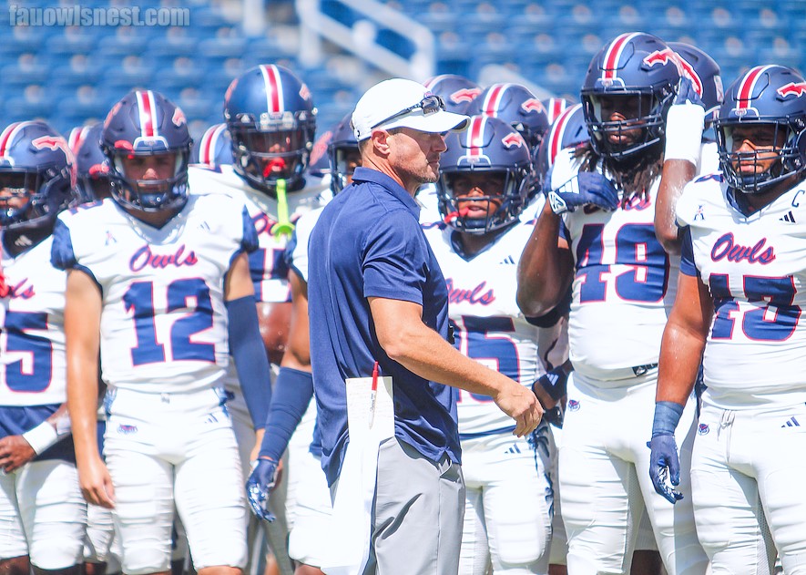 FAU Coach Tom Herman took to the podium on Tuesday afternoon to kickoff Shula Bowl week and give his thoughts on a variety of things, to the Owls recent struggles, to the impact of the FAU vs FIU Rivalry and more. Herman was dejected on Saturday afternoon following the Owls drubbing at the hands of the Army and on Tuesday Herman was rejuvenated, ready to attack the offensive inconsistencies that have been plaguing the team and keep the tough performances in the past. Herman also believes this is a chance for his defense to get back to what they’re capable of doing against an FIU team who is much more balanced than what they faced against Army. Despite the rough start to the season, Herman knows there is still time to right the ship, but that will start this week against FIU a game which has many impacts on and off the field, something Herman noted in his opening statement. Quotes: Herman opening statement on the Shula Bowl: Yeah, I think I’m pretty up to speed on the rivalry. I think I was when I showed up, and not just because of the on field stuff, but rivalries occur for a lot of different reasons, and proximity is usually one of them. And I’ve literally never had a rival that close that I would imagine they’re probably staying in their own team hotel and driving up the day of the game. That’s a luxury I haven’t had. I’m looking forward to it next year, for sure. But no, we see these guys in recruiting. We see them in everything that we do and so and they’re they’re right down the road. A lot of our players played against their players in high school. Probably a lot of our players were recruited by them as well, and vice versa. So it has all of the makings of a great rivalry. So it doesn’t surprise me that it’s as intensive as it is, Herman said. Statement on the impact of the Fans: Well, we have to do a good job of keeping them in the stands.14-7 at halftime, I think we were in the game. So that’s one, and then two, I want to thank them, obviously, for doing that. That was an uncomfortable day to sit and watch, certainly in the second half, what they watched, that was a bit of a struggle. So thank you to our students for going out there and weathering that. But I think probably the biggest thing is just spread the word, let your friends know, bring somebody with you, we get a lot of energy from our students, a lot and that walk into the stadium, through the student tailgate, as well as being out for pregame warmups and seeing the student section fill up, it is really, really motivating and then certainly the noise and pressure that they can provide on our opponent, hopefully, will be at an all time high, Herman said. Herman on positive takeaways from the Army loss: Ton of positives, and I think that’s probably what had me so down, maybe a little bit perplexed, Matt and myself for not seeing this coming somehow, some way. As you look back that is the frustrating thing is there’s so much good that happened, and even offensively, believe it or not, we have shown at our best that were pretty good. And it’s my job, our job, as coaches and leaders on the team, to make sure that we translate the good week of practice into performance on game day. This is the new college football, 50% of our roster is brand new, weve got nine out of 11 starters on offense that are brand new, and we draw a big 10 team on the road in front of 70,000 people, and an Army team that’s been together for years and years and years playing a bunch of juniors and seniors in the same system. Thats not an excuse, that’s why I was mad at myself, its my job to have us more prepared for the Army game, but having played that level of opponent in back to back weeks to start the season can do nothing but help us. We’re going to be better because of it, because we did do a lot of good things. There were a lot of bright spots in those two games, they just weren’t consistent enough and I think moving forward we’ve realized, we got smacked in the face with it, unfortunately, but hopefully, that side of the ball realizes the level of consistency that’s necessary, play after play after play, Herman said. Thoughts on CJ Heards performance: Yeah, he’s really good, I’ve been bragging on him since training camp, he came in like a grown man. I mean, he’s 18, going on 32 and he carries himself like a grown man. You would think he’s a fifth year senior, by the way he handles his business in terms of getting his body right on his own, getting the film work on his own, getting the individual work on his own. The guy eats, sleeps and breathes this game, and he’s really talented, and so you put those things together, and you got a true freshman out there that’s doing all the right things. Theres been 2 games so I dont want to give him too much praise just yet, but I’m glad he’s here for sure, Herman said. Thoughts on what has led to the deep WR rotation: Heat, fatigue, at this stage in the season, the guys run as hard as they can oftentimes, you know, 30 40, 50 yards, when they’re in a dead sprint and then we go no huddle, and then they have to jump back to the line and go do it again, so that becomes tiring. LaJohntay Wester didn’t even play every snap, and so I hope we have six guys that we trust and we can rotate through there, because we’ll be better because of it. In the fourth quarter, those guys are running were talking 7000 yards a game, thats a lot, Herman said. Injury update on EJ Horton: You know, full disclosure, he’s had surgery on his Turf Toe. Were going to see if that’s going to keep him out for the rest of the season, or if there is a chance to come back, but it won’t be anytime soon, Herman said. How much Horton and Alexanders injuries have impacted the offenses ability to stretch the field: Enough for it to matter, you know, I think it’s a right way to say that. And you know, I don’t, I don’t know that there’s any game rep sleuths here, but we also
