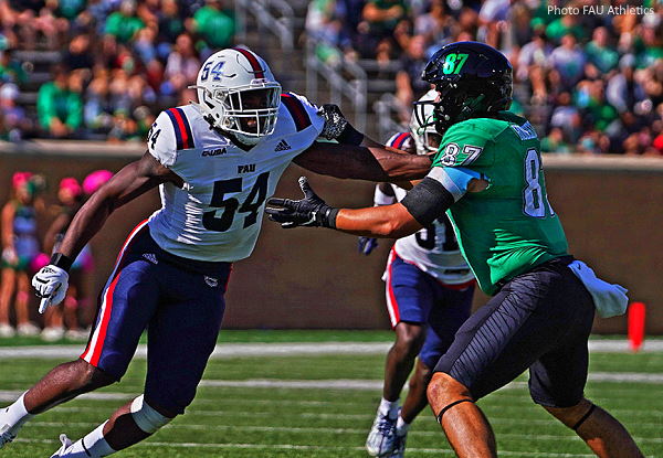 FAU football fell by a score of 45-28 to North Texas on Saturday in Denton. The Owls will head into their first bye week at 2-4 overall and 1-1 in Conference USA play. The two sides traded touchdowns early in the first quarter. UNT scored on its opening possession before N’Kosi Perry responded with a 12-yard touchdown run to tie it at 7-7. The Mean Green then went on a run that left the Owls with an uphill climb. UNT drove 80 yards to the Owls’ goal line and converted a two-yard touchdown pass from Austin Aune to Jyaire Shorter on the first play of the second quarter. FAU marched to the brink of the red zone, but a missed field goal resulted in an empty possession. The Owls’ defense forced a three-and-out, but Perry was picked off on the ensuing possession. UNT’s Ridge Texada returned it 58 yards for a score (21-7). North Texas led 28-7 when the Owls made a mad dash to get back in the game just before halftime. This time it was the defense delivering the scoring play. Teja Young picked off Aune and returned it 64 yards to the house. The Owls would get the ball back on offense one more time with 1:14 before intermission. Starting from his own 20, Perry would lead a seven-play drive in just over a minute to bring his team back within a touchdown. After connecting with Wester for 32 yards over the middle, Perry hit Larry McCammon in the flat and the junior running back took care of the rest. He eluded two tacklers in open space and then one more at the goal line as he went airborne and extended the ball inside the pylon to complete the 35-yard catch and run. FAU went into the break down just 28-21. UNT had the ball out of halftime and immediately marched 71 yards for a touchdown to reassert a 35-21 lead. Perry was again intercepted by Texada on the Owls’ next drive and this time the Mean Green corner took it back to the one-yard line. UNT punched it in for a score on the next play. The Owls stared down a 21-point deficit yet again but continued to battle. LaJohntay Wester hauled in his eighth touchdown reception of the year this one on a 4th and 5 from the UNT 13-yard line to make it 45-28 early in the fourth quarter. Later in the quarter, the Owls’ defense made a key stop on third down to force a UNT punt but a ‘running into the kicker’ call gave the home side a fresh set of downs. With time not on the Owls’ side, UNT would hold the ball for another four minutes and eventually add three more points on a 43-yard field goal. Coach Taggart “I feel like we left somewhere around 20 points on the board with the dropped passes. For a football team that’s looking to win on the road, we’ve got to have those. Those are the guys that we count on daily. We can’t give up 300 yards rushing the football. And then we can’t throw two interceptions for touchdowns. That’s a killer. We gave them 14 points right there. That’s the difference in the ballgame. Three dropped balls, two pick-sixes. It’s hard to win that way. When you’re on the road, we’ve got to play better.” Notables Perry finished 26-for-50 with 296 yards through the air McCammon led the rushing attack with 79 yards on 15 carries Wester hauled in a season-high 10 catches for 113 yards Wester is one shy of tying the FAU single-season record Eddie Williams finished with three tackles in addition to a third quarter forced fumble, which he also recovered Young led the Owls in tackles with eight His interception was the sixth of his career and the third time he’s returned an INT for a pick-six Latrell Jean and Chris Jones each recorded a sack Armani-Eli Adams and Dwight Toombs II tied for second on the team with six tackles The Owls will return to the field when Rice visits Boca Raton on October 15th.