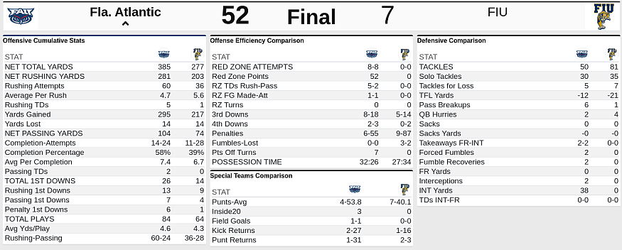 Team Box score from the Owls’ contest against the Panthers on November 12, 2022. OPEN IMAGE IN NEW TAB FROM MOBILE TO VIEW FULL SIZE OR PINCH TO ZOOM HERE