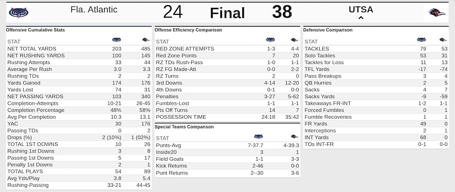 Team Box score from the Owls’ contest against the Roadrunners on October 19, 2024. OPEN IMAGE IN NEW TAB FROM MOBILE TO VIEW FULL SIZE OR PINCH TO ZOOM HERE