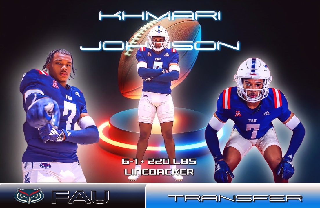 📢 LINE 'EM UP! CONGRATS to 6-1, 220 lbs #Transfer LB @khmarijohnson, formerly of @GOVSFB, on his commitment to Coach @ZKittley and @FAUFootball! WELCOME to Parad🌴se in the 5⃣6⃣1⃣ Khmari! #FAU 🦉 👌 pic.twitter.com/CODEAxSEMi