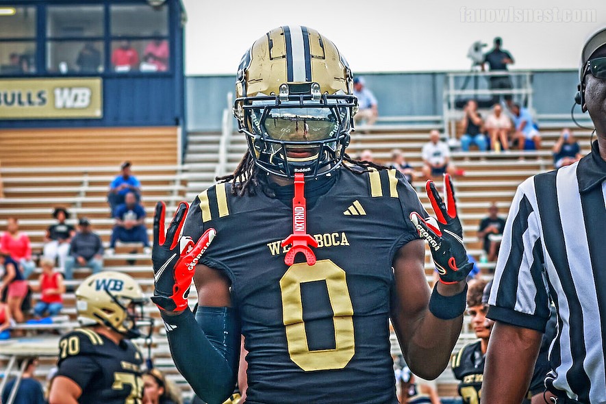 Kickoff for FAUs season opener at Michigan State is just a few short days away. While the anticipation is mounting, the Owls 2025 commits have begun their senior season. The future of FAU football is already off to a great start, as the members of Paradise 25 are showing of the talent well be seeing very soon in Boca Raton. Without further ado, lets dive into how members of FAUs 2025 commitment class fared in their Week 1 matchups! Damon Allen, DB West Boca We were in attendance for West Bocas regular season matchup against The Benjamin School. Damon (photo top, Christian Proscia) anchored down the right side of the field the entire game, shutting down the Bucs passing attack. Allens 5 tackle, 1 PBU, 1 Pass Deflection game helped the Bulls narrowly defeat Benjamin 14-13. Branden Hoch, WR St. Thomas Aquinas Saturday (Aug 24) afternoon, the #11 (National) ranked St. Thomas Aquinas Raiders hosted #2 Bishop Gorman (NV). While Aquinas did fall 29-21 to the Gaels, Owls commit Branden Hoch (photo below Christian Proscia) had a strong showing. During Saturdays primetime matchup, Hoch reeled in 3 grabs for 35 yards. Cameron Gooden, DL Ft. Pierce Westwood Cameron Gooden has been a force to be reckoned with on a very talented Ft. Pierce Westwood defense. The majority of Westwoods matchup with John Carroll unfortunately was postponed, however Gooden recorded 5 tackles during the shortened game. Robert Lee, LB Osceola Robert Lee had an outstanding performance last weekend, en route to Osceolas 21-7 victory over Treasure Coast. Lee was flying across the field, recording 12 total tackles and a forced fumble. Hector Chavez, LB Columbus Our linebacker room looks ELITE! During Columbus nailbiter 17-14 victory over SouthRidge, Hector anchored his defense, recording 8 total tackles, 2 TFL, and 1 QB Hurry. Tamez Young, TE Gaither Tamez was an offensive focal point during Gaithers 41-19 loss to Armwood. Young reeled in 4 receptions for 70 yards. Logan Husband, OL St. Thomas Aquinas Its time to show some love to the big guy in the trenches. Owls offensive line commit Logan Husband (photo right below, Christian Proscia) had a stellar performance against that #2 Bishop Gorman defense. Husband solidified the line, recording 2 pancakes and allowing 0 QB hurries. With the high school football season officially under way, make sure you continue to tune into FAU Owls Nest for weekly updates on your recruits.