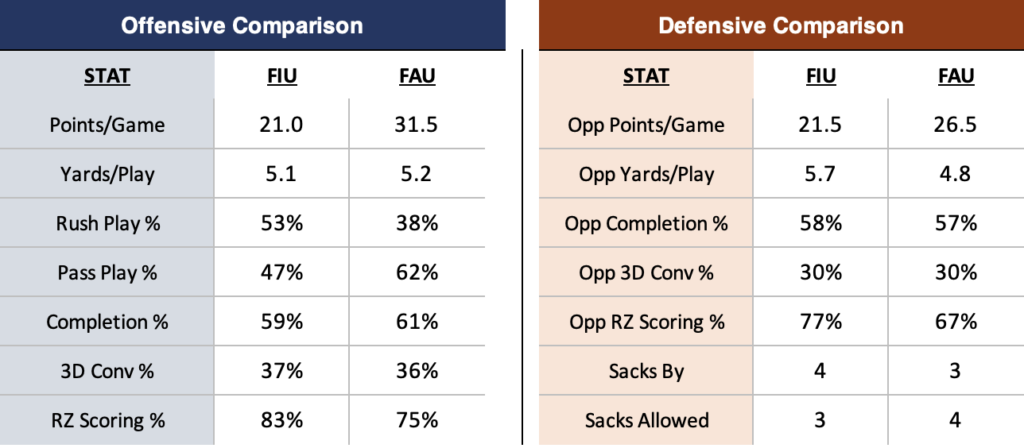 Overall on offense, it will come down to the rushing game in this one. The Panthers will look to lock down the passing game, but if FAU can average four yards per carry and find themselves in second & short situations it will force Florida International to stretch themselves.