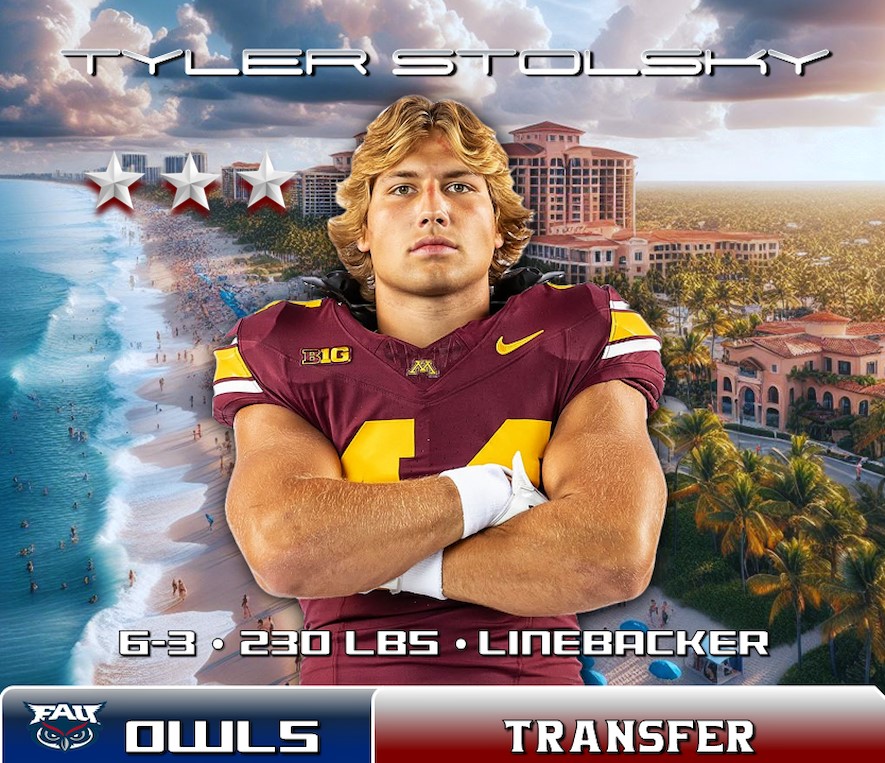 Minnesota LB Tyler Stolsky has transfered to to FAU Football. Stolsky announced his commitment to the Owls on Monday evening via X, shortly after entering the portal on Dec. 8. He joins the team with two years of eligibility remaining.
