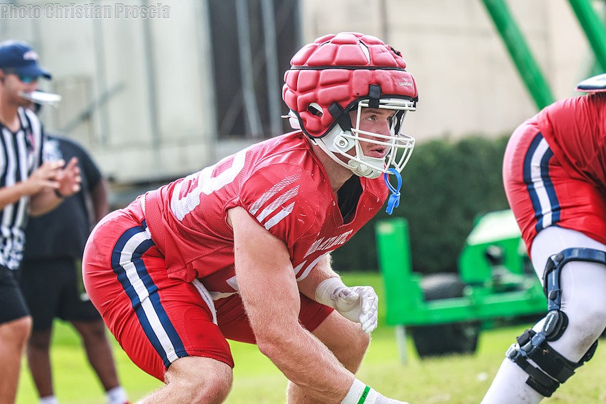 Tuesday marked day six of Florida Atlantic football training camp and the Owls got to work under the hot South Florida sun after days of gloom and rain during practice. Today we shift our focus over the Tight End unit, where like many position groups on this team, has showcased its depth throughout practice. Tight Ends Returners: Wyatt Sullivan – 6’4″ Redshirt-Sophomore 5 REC, 29 YDS Kahlil Brantley – 6’2″ Redshirt-Junior 5 REC, 35 YDS Zeke Moore – 6’2″ Sophomore 13 REC, 66 YDS Elijah Brown – 6’6″ Redshirt-Sophomore Newcomers: Kam Bell 6’4″ – Sophomore As previously mentioned, the tight end room has showcased its depth so far throughout fall camp. A nice change of pace from last season where Coach Herman had to play a true freshman in Zeke Moore due to injuries in the tight end unit. This season Coach Herman now has the option to play more than just Zeke Moore, with Wyatt Sullivan, Elijah Brown, and Kahlil Brantley if he’s healthy all able to play and make an impact. Coach Herman touched on the depth of the tight end room in a post practice press conference on Tuesday. Accordingly all returning unit members should see time throughout the season at varying points. Newcomer Cam Bell was originally slated to join the team next season but when a spot opened up early he eagerly jumped at the chance to get time under his belt in the summer workout and camp cycle. He will likely use this season as a growth period, but could see time given a necessity. “They made unbelievable strides in so many different areas, when Kahlil was healthy and going, I think Coach Frye and myself felt like we had four capable tight ends in Zeke, Wyatt, EB (Elijah Brown), and Kahlil”, Coach Herman noted. Coach Herman raved about the position as a whole going into this season. Zeke Moore proved as a freshman he was capable of helping the offense last season, and the development of the rest of the tight end room has made that a strength of the offense. The Owls now have a major shift in the offense with their being another three tight ends to potentially play, rather than just a lone true freshman. “We went from having to play a true freshman, which he proved we can play winning offense with him, to having four guys who can play,” Coach Herman added in the post practice press conference. Zeke Moore: Coming into his Sophomore season with the Owls, Zeke Moore has a unique opportunity to use what he learned last season in Coach Herman’s offense to help himself and the rest of the tight end room develop further. As a true freshman receiving the most playing time last season in that spot, Moore will certainly be relied upon to be a leader among the group. Moore touched on what he wanted to improve upon regarding his individual development in the post practice press conference on Tuesday. Quotable: “A little bit of everything, that kind of comes with maturity, but definitely my role in receiving, playing H-back, just really mastering that”, Moore said. Wyatt Sullivan: For Wyatt Sullivan, it’s year three with FAU, and his second season with Coach Herman. The 6’4″ Redshirt-Sophomore came into FAU with the mindset of playing Wide Receiver, which quickly turned to him playing tight end. Since the transition, Sullivan has put on weight and now has a build more fitted for the tight end position, where he’ll be coming into a bigger role this season. Sullivan’s physique change is not the only noticeable change to him however, noting the change of culture over the last few seasons in the post practice press conference. Quotable: “I’d say the vibe from this year to my first year is night and day. The personalities mesh better, everyone’s friends, you see people hanging out outside of football, people get work in outside of football and people aren’t hating on each other, everybody just wants to win”, Sullivan said. Kahlil Brantley: Redshirt-Junior Kahlil Brantley enters his second season with Coach Herman and the FAU Owls. While it’s expected for Brantley to have a much bigger role this season, there is one question mark and that’s his health. Coach Herman mentioned in the post practice press conference that Brantley’s been dealing with an injury, but hopes to get him back going in practice next week. When asked about what his goal was for the 2024 season, Brantley emphasized the importance of him being able to stay on the field. Quotable: “Staying healthy and being able to help my teammates out, whatever I can do for the team, I’m there for it”, Brantley noted. Elijah Brown: The fourth tight end in the rotation Coach Herman eluded to was Alabama transfer and Redshirt-Sophomore Elijah Brown (photo below Rick Henderson). At 6’6″ and 250 pounds, Brown’s physique and frame is built for this offense, and Owls fans should be excited for what he can bring to this team this season. In year two of the Tom Herman Era, the tight end room should look night and day to last season. Owl Bytes Newfound depth For the first time at FAU in the Tom Herman Era, the tight end room has discovered some newfound depth. If Brantley’s healthy, the Owls will go into the season with a rotation of possibly four tight ends (Zeke Moore, Elijah Brown, Wyatt Sullivan, and Kahlil Brantley). Culture Change Continuity There are a lot of new faces to the Owls this season as well with it being the second year with Tom Herman at Head Coach. With that, there’s a new sense of diversity to the team, and players have raved about the relationship they have with one another. Unlike recent seasons, this is a consistent theme that is announced, proclaimed, and observed throughout media sessions daily – solidifying it’s legitimacy. Coaches Corner Coach Tom Herman headlined our interview sessions today. Up Next The Owls will remain at the Tom Oxley athletic fields for the remainder of the week, and will be in full pads again tomorrow. Our team will be taking a look at the kicking game – incl