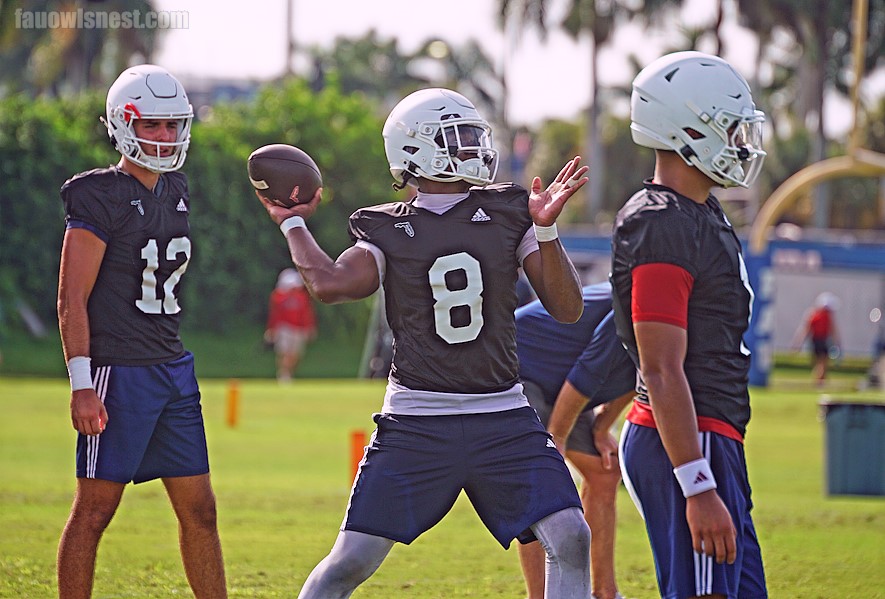 Today marked the official beginning of FAU training camp as the Owls hit Tom Oxley field, getting initial work in as the Owls look to finalize multiple positional battles over the next couple of weeks. The first session of training camp has come and gone for FAU and although today was a bit of a warming up period for the Owls as they get back in full swing, its still an opportunity for players to make first impressions on the coaching staff and put the culture that has been established on full display on the field. Herman believes that although there were some typical first day miscues, his team took well to criticism on the first day of camp, and after day 1 he is pleased with the effort. Youre not going to win a job on day 1, but you can certainly make an impression, one or way or another. Its about choosing to give maximum effort on every play, and I saw what I normally see, but in a good way. Having to correct a few mistakes here and there was very well received by the players. At times, other seasons, there would have been some side-talk and excuses made, it was hey, the old man is right lets get our cr*p together and get to work, Herman said. Below are our observations for the session during the open viewing period, and the interview period with Coach Tom Herman. OwlBytes The QB Race The Quarterback position (photo above), arguably the biggest positional battle to note featured 4 quarterbacks rotating during drill period, Cam Fancher and Tyriq Starks who both lead in terms of overall reps, along with Colorado transfer Kasen Weisman and freshman Michael Valentino. Starks is in year 2 for the Owls, while Fancher transferred in from Marshall and comes into this battle with starting experience, which Owls WR BJ Alexander says is helping him adjust, however also mentioning that the battle is still wide open. I would say Cam has leadership more down pat, he was the starter at Marshall, he has some. Games under his belt, so he knows how to lead the team. Tyriq is not too far behind, he has some work to do on the leadership side, but it could go either way, Alexander said. Buy In Alexander has been an Owl since 2020 after transferring from Kentucky and has been apart of 3 different Owl regimes, including the Willie Taggart era, which when comparing the stage of the programs in year 2 under Taggart and now heading into year 2 under Herman, says is a big difference in terms of players buying in. It comes down to just buying in, I will say during the Taggert Era there wasnt enough buying in, people doing their own thing, not taking the coaching as well. With Coach Herman, people are starting to buy in, nothing too crazy, nothing different but we are just buying into the culture, Alexander said. After working with a roster that wasnt entirely his selection in 2023, Herman was able to bring in a strong portal & recruit class in 2024. Not only does he believe that his class is talented, but the culture of buying that Alexander mentioned, is something that Herman believes is evident in this team as well. We upgraded the talent, but we also upgraded the people. The majority of the team has bought into the way we’re doing things, Herman said. Getting a Jump In terms of the defensive side of the ball, the line, particularly the Edge rushers were a group that received part of that major upgrade in talent. FAU brought in an array of talent, including Colorado transfer Eric Brantley Jr and Auburn transfer Wilky Denaud, but it wasnt the Ex P5 players who stole the show during the 1st practice, it was August Salvati from Kilgore College and Chisom Ifeyani from Shippensburg who shined in the eyes of FAU Coach Tom Herman early on. You can tell if a guy jumps off the ball or not (in the first practice) and Chisom certainly displayed that in the spring and Marlo is not quite full, but he will be and he looks great going through drills. Salvati was a guy that jumped off the ball today, weve got some dudes that have twitch coming off the ball that we didnt have last year at that position I feel a lot better about that position than we have in the past, Herman said. Culture Club With a boatload of talent transferring in this past offseason, and talent remaining from last year, there will be some players who dont receive the starting nod week one, which for some individuals may be disheartening. Although it may be disheartening to not receive the 1st team job, FAU having depth across the board is something that is critical incase of injuries and Eddie Williams, a veteran LB for the Owls believes that the culture that has been put in place at FAU will keep those players who dont start week 1 dialed in no matter what. Yeah, its a culture and our culture is here. Everybody is bought in and wants to win, so everybody is going to do their job, Williams said. Coaches Corner Head Coach Tom Herman addressed the media at the close of today’s action. Here is what he had to say. The Owls got to work indeed, and that work will continue over the next couple of weeks, as more positional battles ensue, more players breakout, and the 2024 Owls are shaped and molded into what will be put on display week 1 against Michigan State. For now, they will be back on the Tom Oxley fields tomorrow for day two of their camp cycle, once again in helmets and jerseys.
